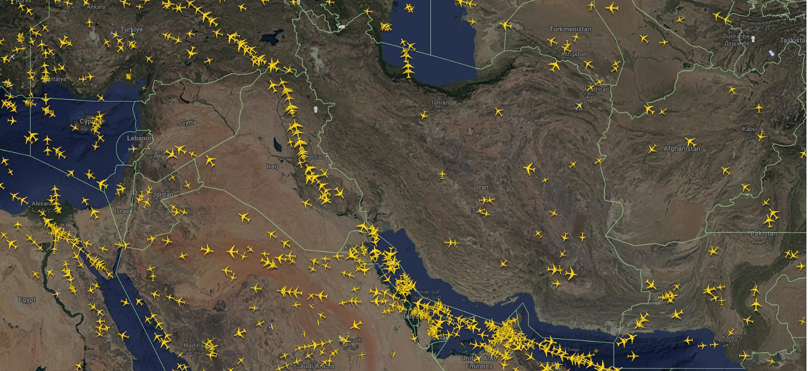 أعلنت شركات الطيران اليوم عن إلغاء أكثر من 3,400 رحلة جوية في سبعة مطارات رئيسية بالشرق الأوسط، تشمل مطارات: دبي (DXB)، الدوحة (DOH)، أبوظبي (AUH)، الشارقة (SHJ)، الكويت (KWI)، المنامة (BAH)، ودبي وورلد سنترال (DWC).